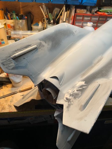 Alle Macken sind soweit gefüllert und/oder gespachtelt, jetzt steht als nächstes Schleifen, Naßschleifen und grundieren auf dem Plan.