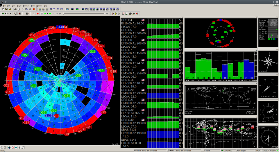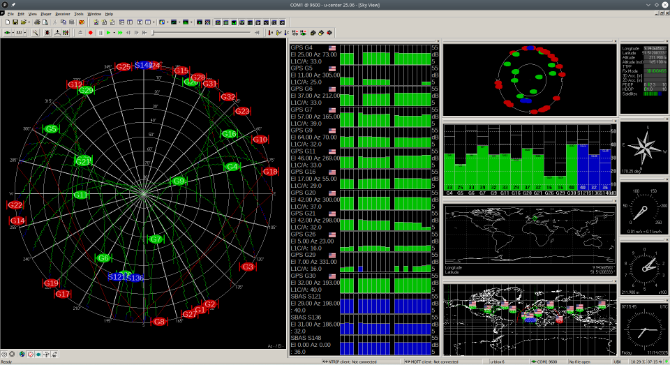 Ja, das stimmt natürlich. U-Center basiert ja grundsätzlich auch nur auf den NMEA Outputs und die sind nicht ohne Grund standardisiert. Solange der Receiver die NMEA-GPGSA und NMEA-GPGSV Messages ausspuckt, hat man die Daten der einzelnen Satelliten.