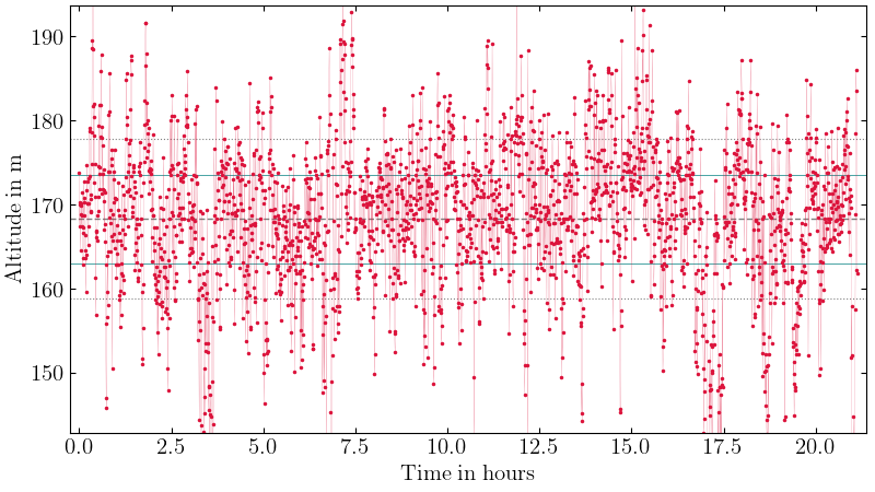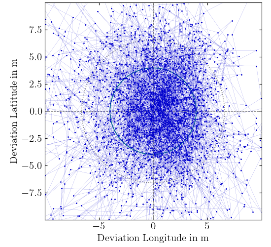 Zitat: Herzlichen Dank! Sowas macht mir halt Spaß und das Thema GPS musste ich eh nochmal komplett durchspielen. Ich hab den Receiver nochmal laufen lassen und mal geguckt, wie sehr berechnete Position und Höhe schwanken. Für die Position ist das etwa +/-6,5m. Für die Höhe gibt es da schon einige Ausreißer und die RMS Streuung ist 9,5 Meter.Gar nicht mal so wenig... Alles Gute Schmidti |