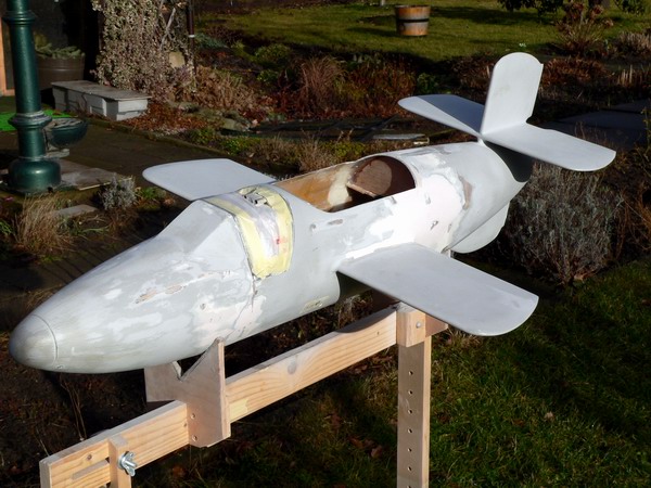 Nun ist sie fast wieder hergestellt. Der Cockpitdeckel ist ja noch i.O. aber für die große Ladebucht muß ich einen neuen fertigen. Das ist bei der Größe nicht einfach...